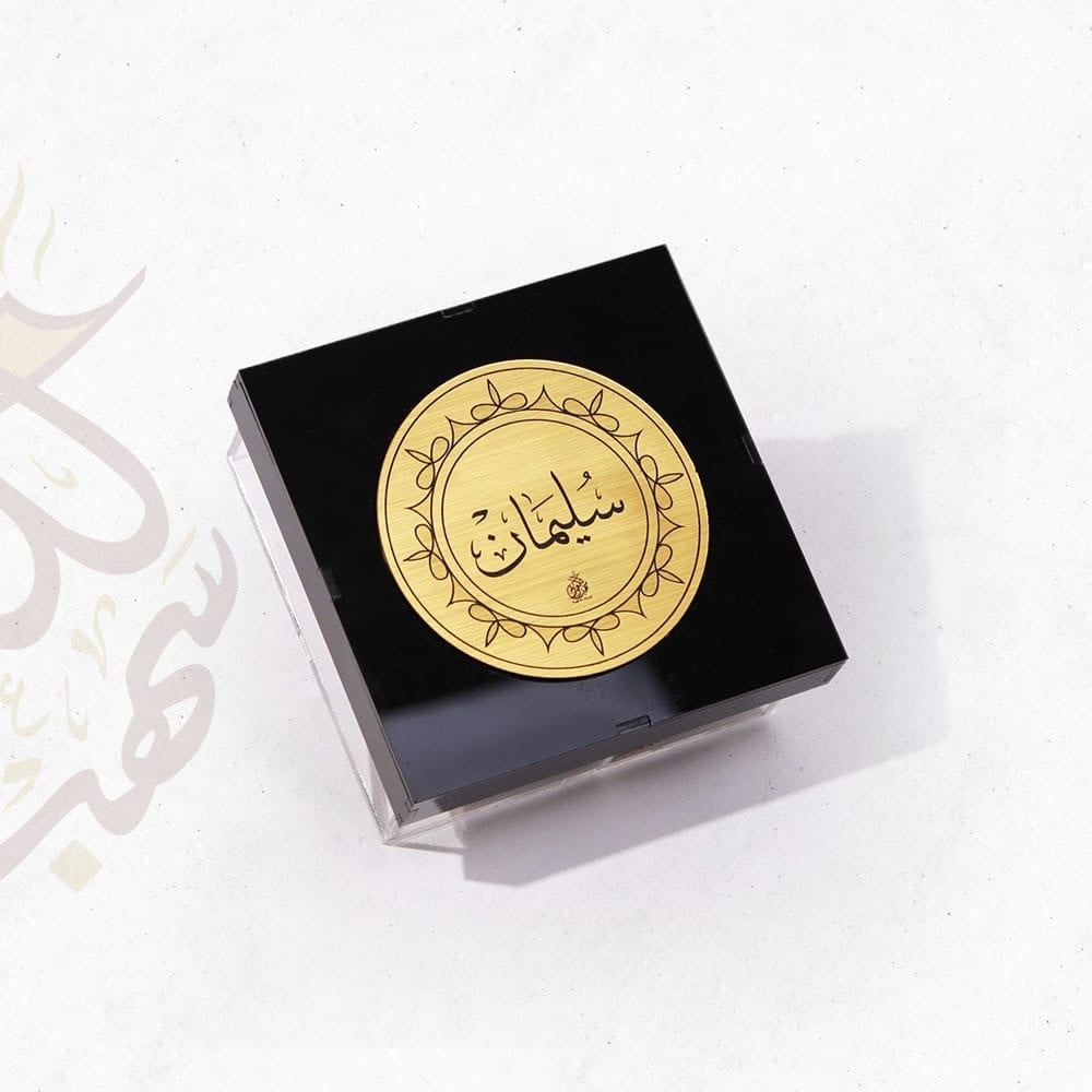 2. علبة بخور مقاس 14سم × 14سم ارتفاع 6.5سم للإهداء بالاسم ذهبي حفر ليزر يوجد بداخلها: