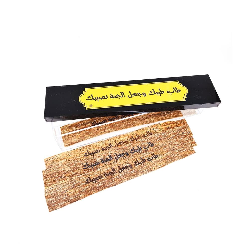 - بوكس أكريلك مقاس { ارتفاع 6 سم × عرض 6 سم × طول 30 سم } مع كتابة عبارة الاسم أعلى البوكس قص وحفر ليزر + عود رقائق فيتنامي درجة A عدد 6 قطع عود مع كتابة عبارة الإهداء على جميع قطع العود بنفس العبارة موحدة حسب رغبتك