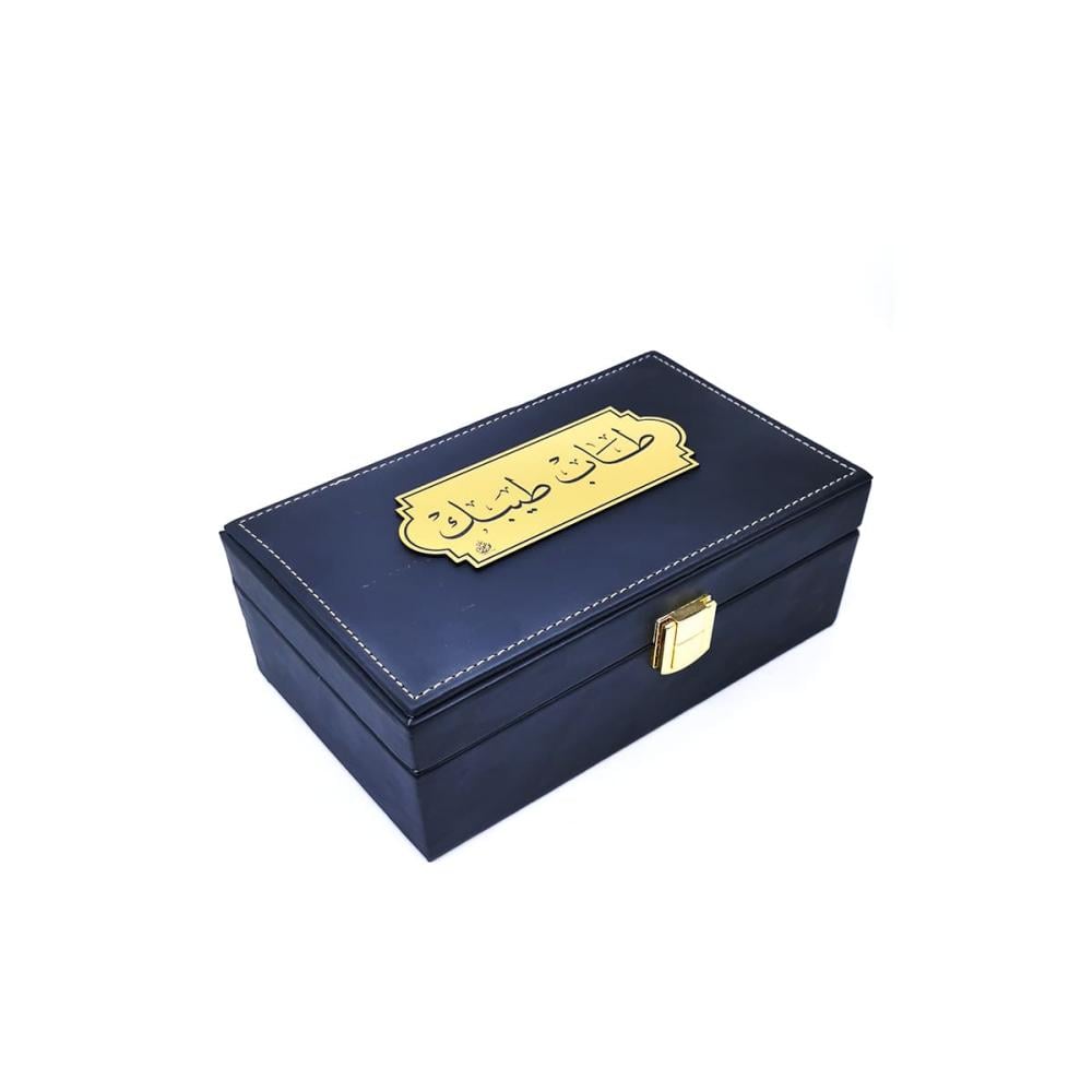 بوكس جلد إيطالي أسود مع تاق قص حفر ليزر ذهبي بالاسم حجم ربع كيلو